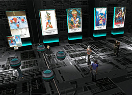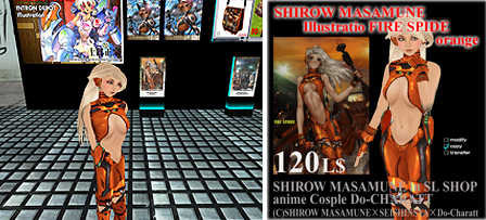 士郎政宗inセカンドライフショップ本店では、士郎正宗氏のイラストを大型パネルで展示。 SFチックな倉庫が雰囲気満点です。