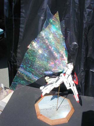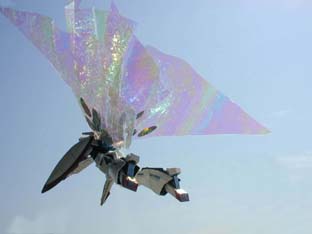 見せ場の月光蝶は、思考錯誤のうえ、これもハンズで、見つけた、オーロラフィルムのウェーブ状の物をカットして、そこにホロオーロラという、シールを貼りました。