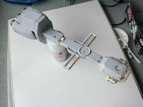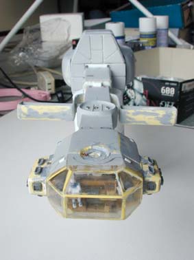 | キャノピー。もーここは、強引。だいたいで、切り出した透明プラバンを張り合わせて、隙間には、ポリパテ、はみ出したとこは、削り。 | コクピット上のエアロック、結構修正したんだけど、まだまた、歪だ。